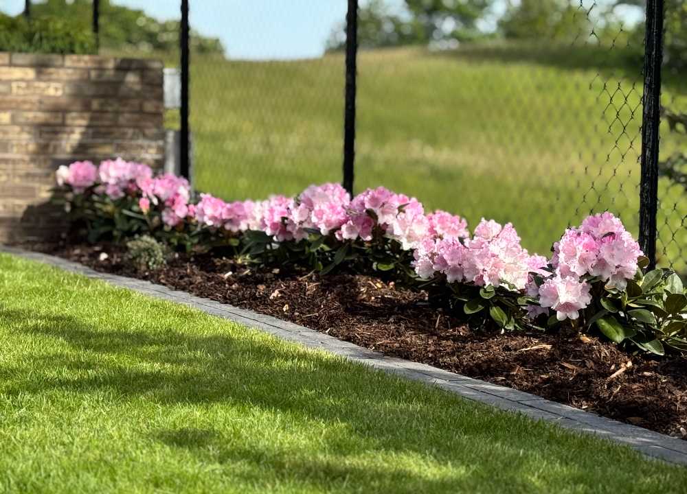 Tomten ble delt inn i ulike soner. Tegl ble valgt som hovedmateriale for belegg og klippekant rundt plenen. Dette gir et stilrent uttrykk. Robotklipperen tar seg av gresset helt inn til kantene, slik at ingen kanter må klippes i etterkant. Plantevalget er nøye gjennomtenkt for å gi variasjon i både høyde og vekstform. Her finner du både vintergrønne og løvfellende arter, samt planter med ulike blomstringstider og ulik tetthet. Dette gjør at beplantningen krever minimalt med vedlikehold.