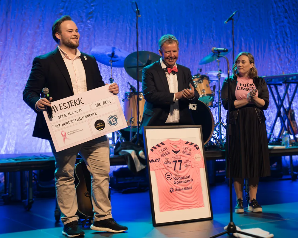 Utdeling av «årets julegave» er et av de store høydepunktene for oss i Stangeland. Dette er en tradisjon vi er stolte av, hvor vi gir 100.000 kroner til et godt formål nominert av våre ansatte. I år var det én kandidat som traff oss rett i hjertet. Rosa Sløyfe-aksjonen og forskning på brystkreft, gjennom Sola Håndball og Kreftforeningen.